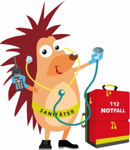 Mit einer illustrierten Geschichte (Kamishibai) von Igelchen und seinen Freunden lernen die Kleinen spielerisch und kindgerecht den ersten Umgang mit einer Notfallsituation. Dabei lernen und merken sie sich die Notrufnummer, üben das Absetzen eines Notrufs, bekommen die Bestandteile eines Verbandkastens und die Wundversorgung durch Pflaster und Verbände gezeigt. Am Ende erhalten die Kinder ihren abgestempelten Pflasterpass und den Button „Auch ich kann helfen!“